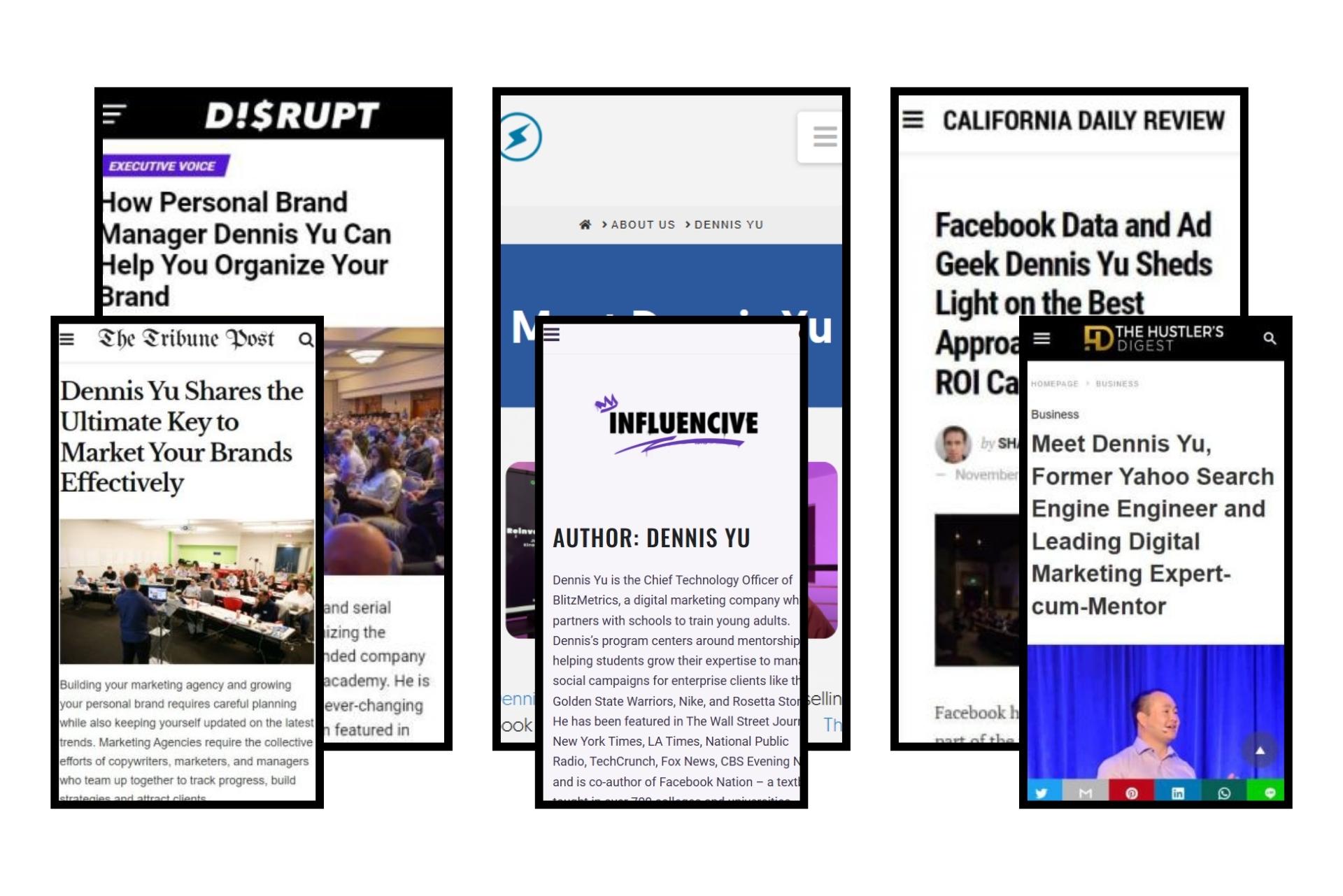 - Dennis Yu was featured in several publications including Disrupt Magazine, The Hustler’s Digest, and more.
