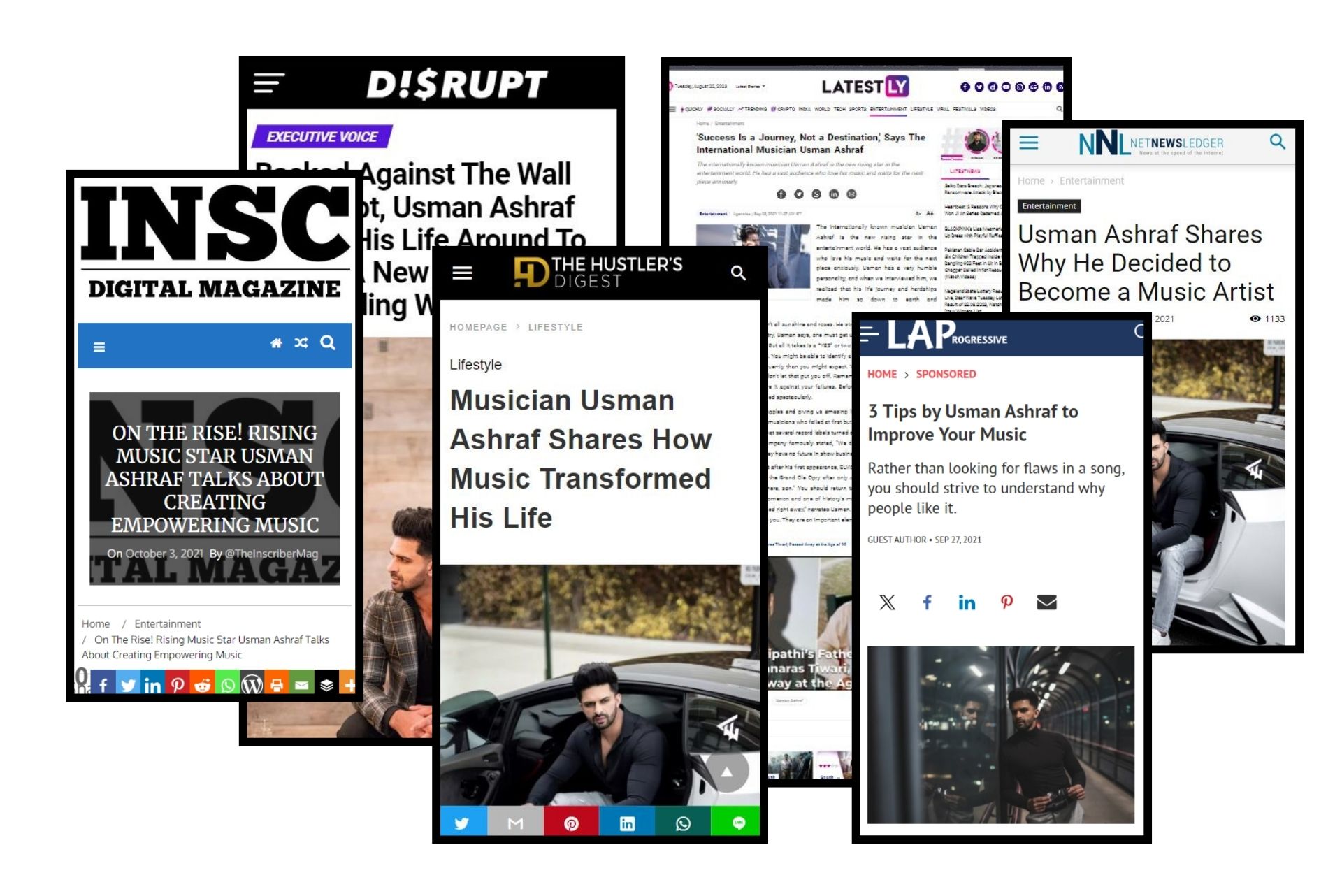 - Usman Ashraf featured in several publications, including The Inscriber Magazine, Vents Magazine, The Hustlers Magazine, and more.